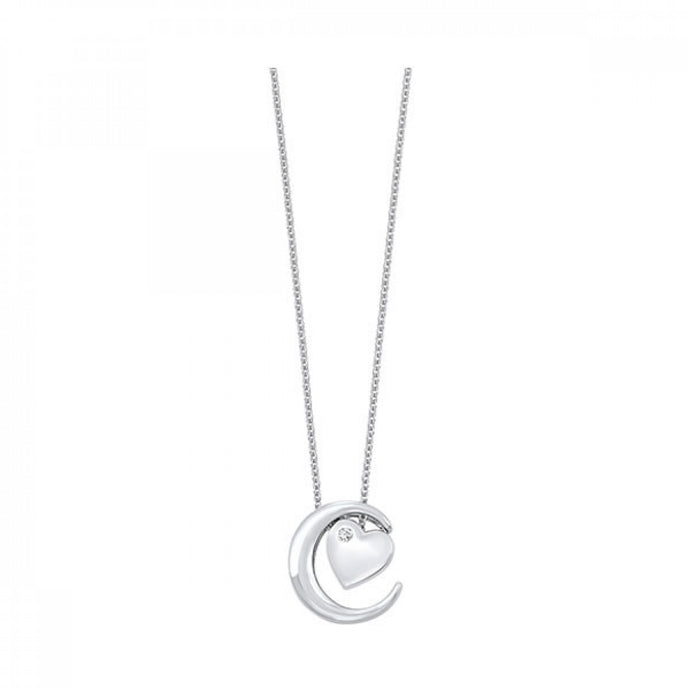 10K White Gold or Sterling Silver Diamond Heart Pendant (0.10 ...