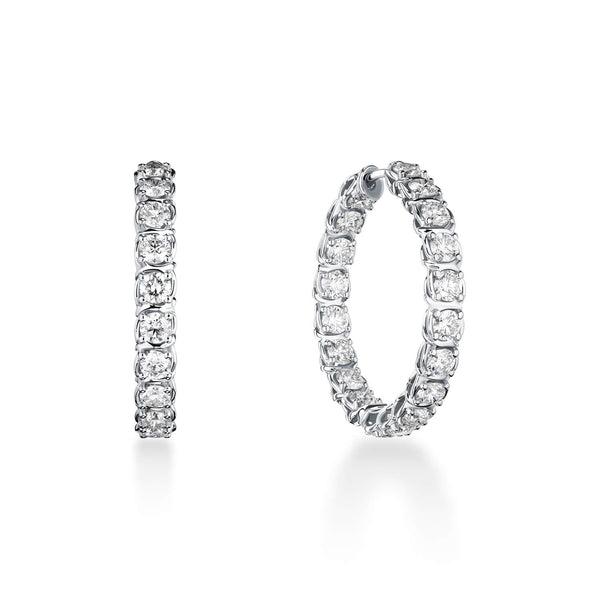 14K White Gold Prong Inside Outside Diamond Hoop Earrings