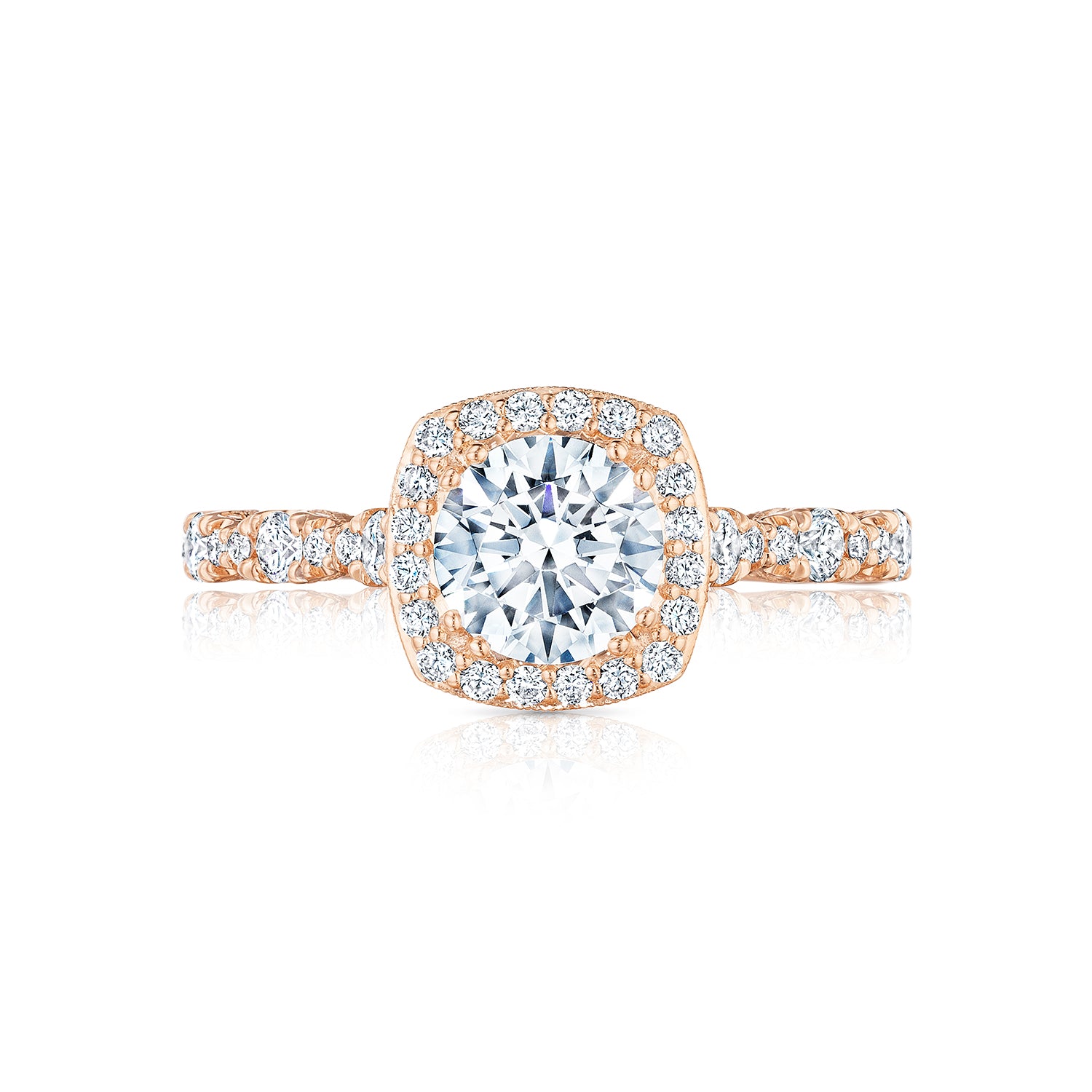 Tacori 18k Pink Gold Petite Crescent Round Diamond Engagement Ring Setting (0.55 CTW)