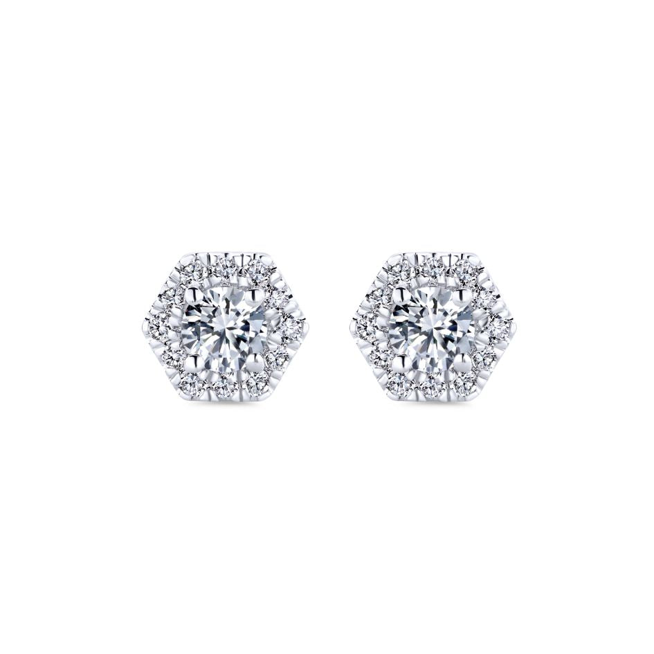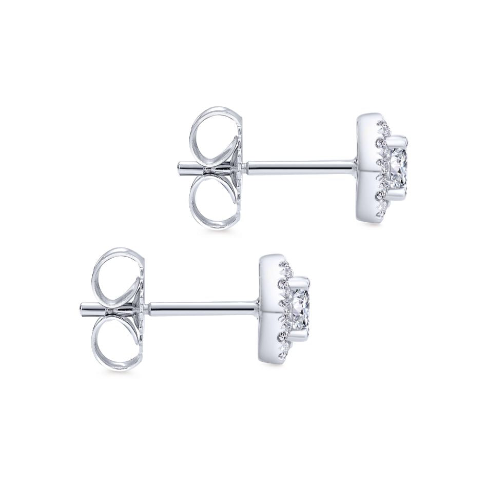 These absolutely breathtaking diamond stud earrings wrapped in a halo of sparkling diamonds are timeless.