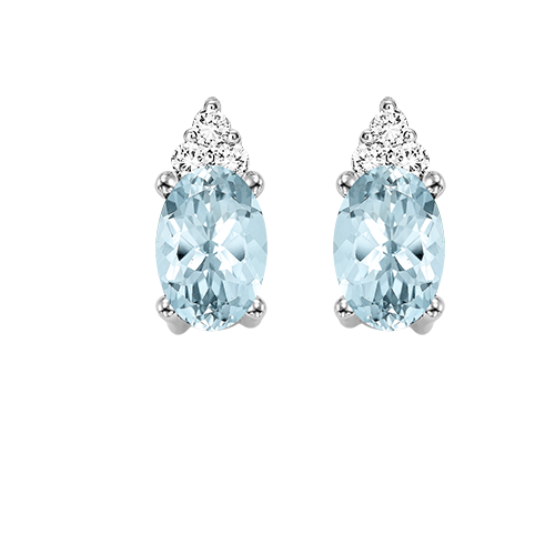 White Gold Diamond & Aquamarine Fashion Colorstone Earring