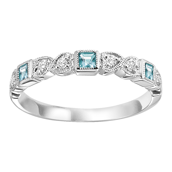 Mix Bezel Aquamarine Band 1/10CT in 10K White Gold