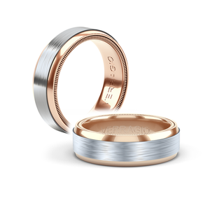 With this new two-tone design, durable grey titanium meets an inner layer of lustrous gold with a sleek beveled edge. Choose black or gray titanium combined with either rose, yellow, or white gold to make this ring your own. Verragio’ s Signature Beading along the edge adds sophisticated style, while the 7mm width fits comfortably for everyday wear. Available in 14K and 18K
