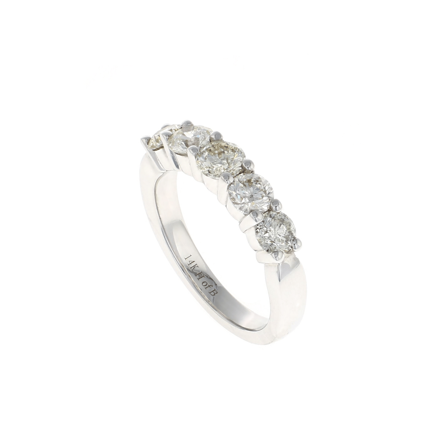 A dazzling 1.50 CTW 5 Stone Shared Prong diamond band set in 14K White Gold. This ring would make a fantastic wedding band, anniversary, birthday, fashion or stackable ring.