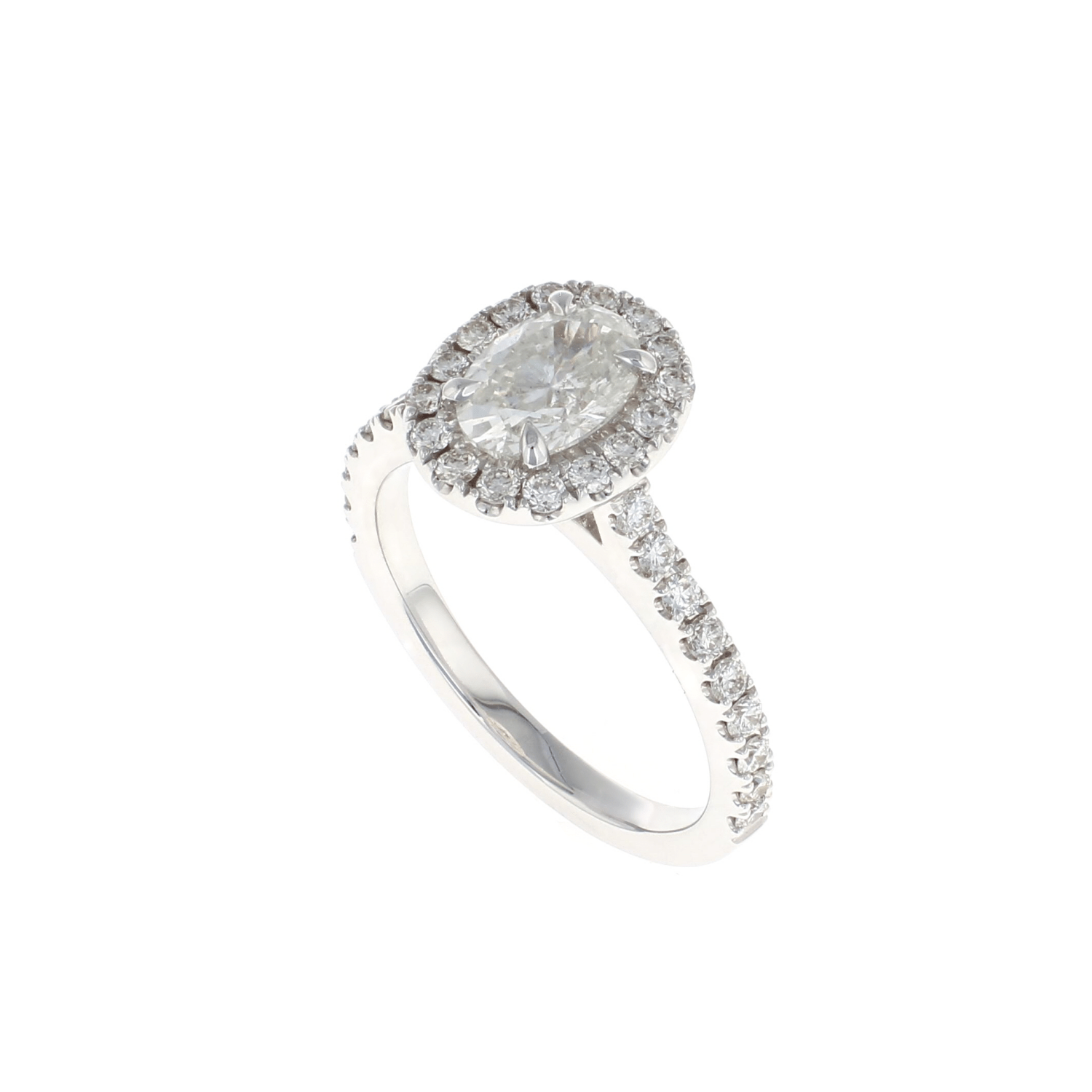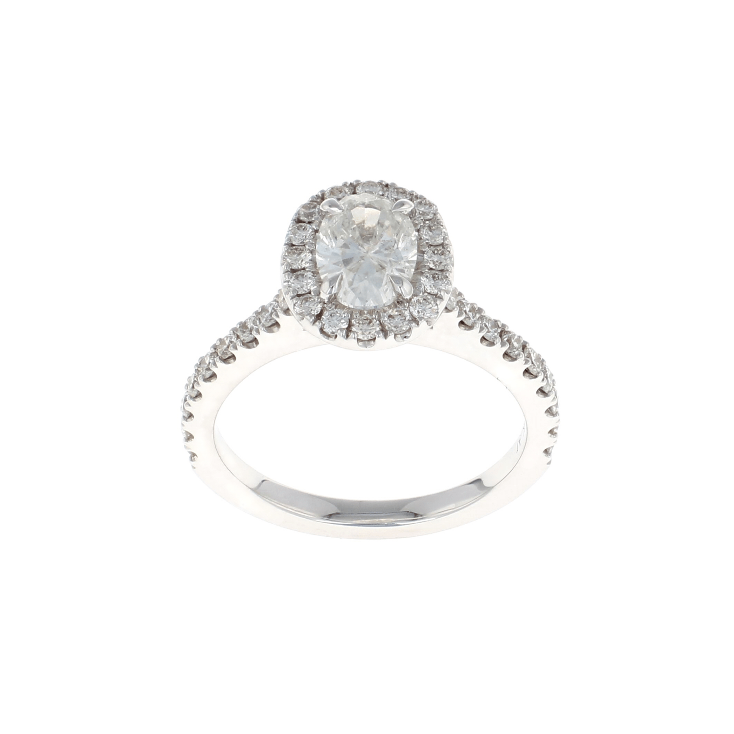 This beautiful Halo Complete engagement ring with a sparkling Oval (1.00CTW) Center stone and a 1/2 Way pave semi mount set in 14K White Gold is a romantic way to ask, "Will you marry me?"