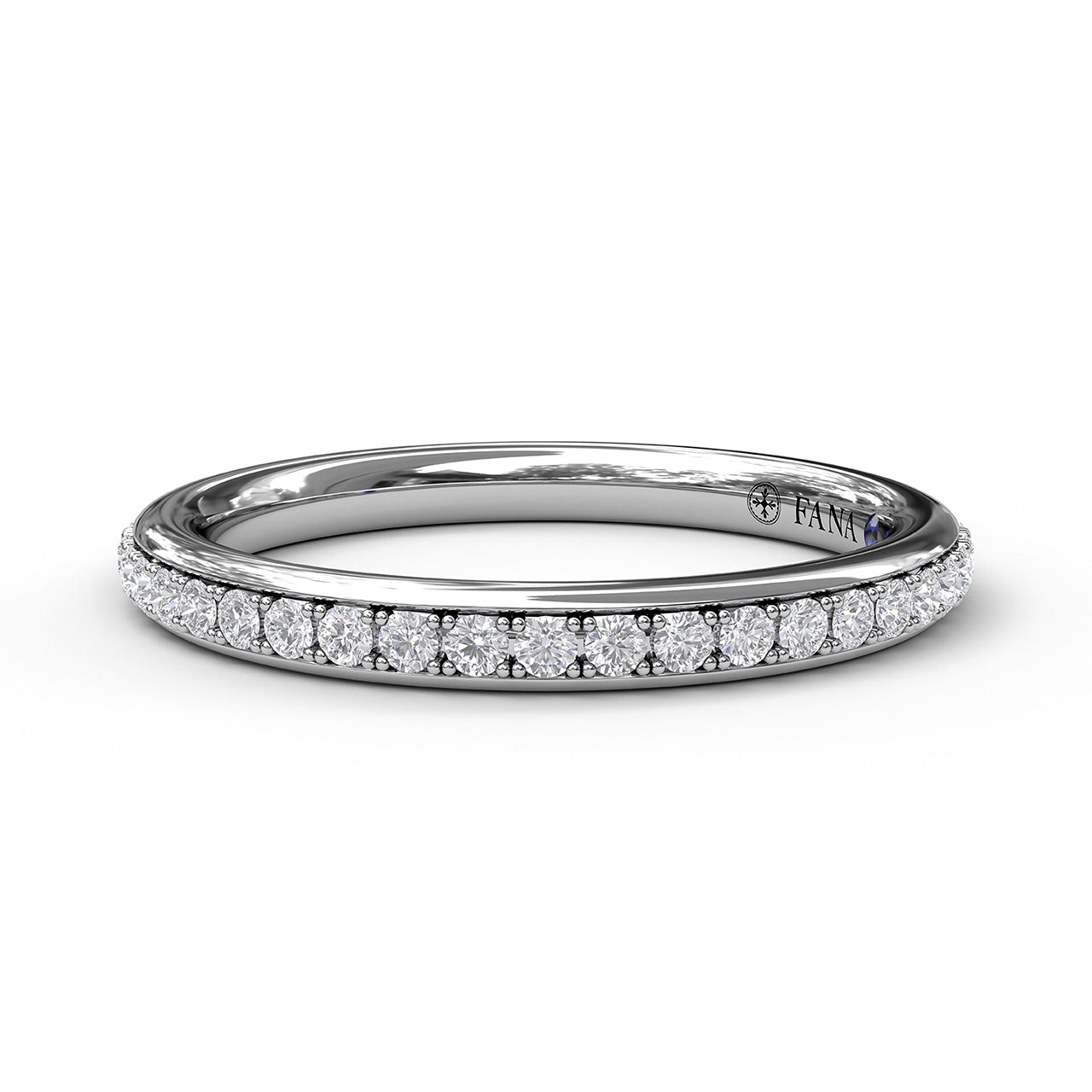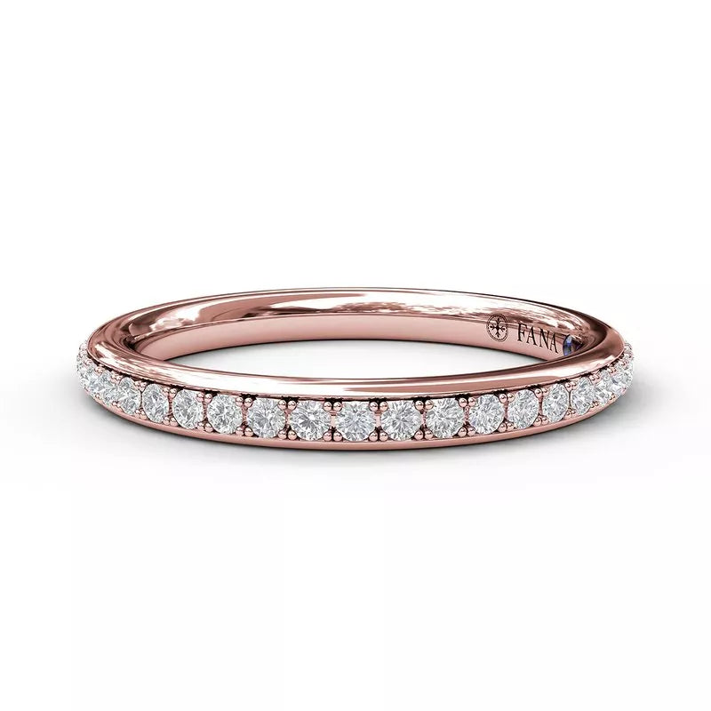 This FANA wedding ring is available in your choice of Platinum, White Yellow or Rose 18 or 14K gold. Price shown is for 14K Gold.