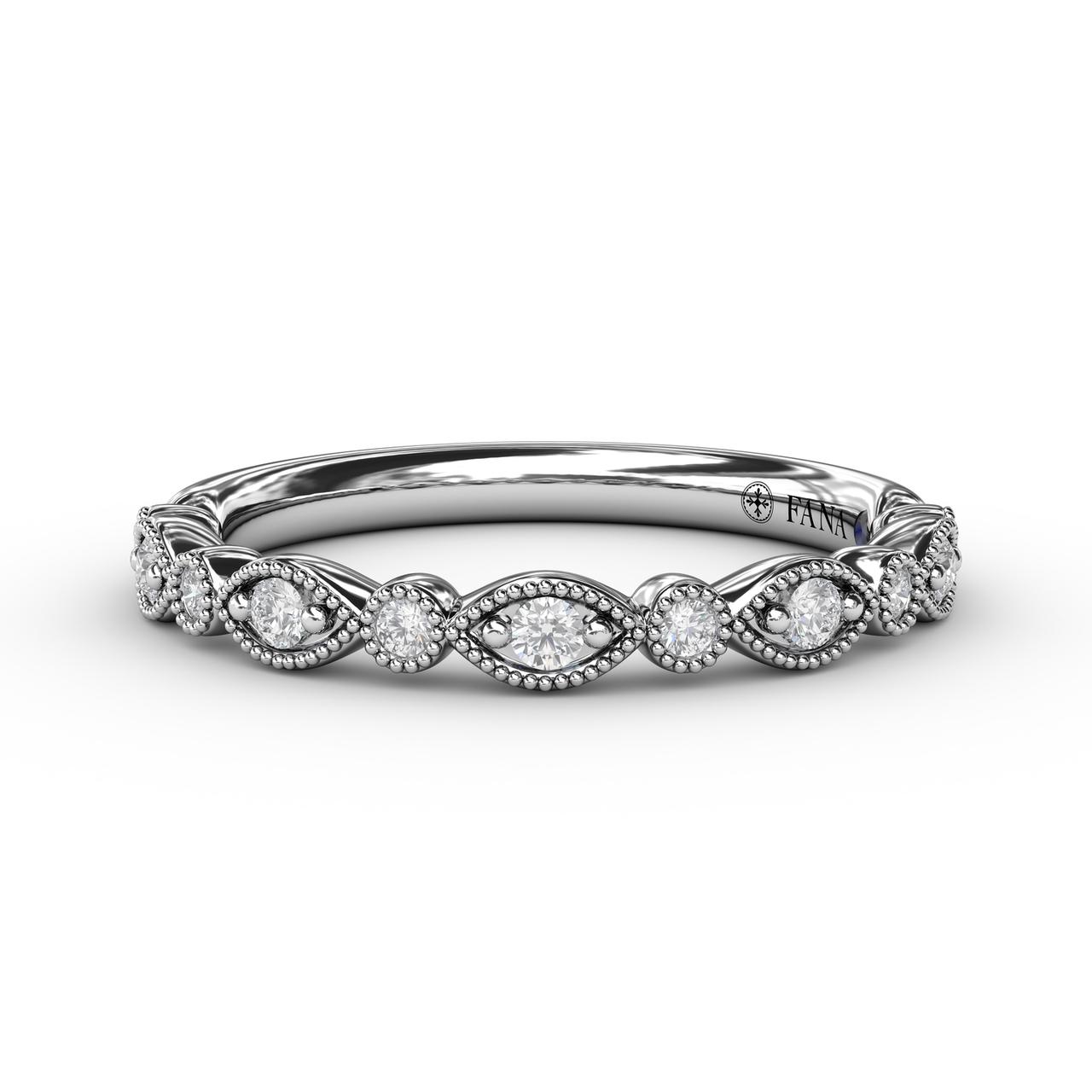 This FANA wedding ring is available in your choice of Platinum, White Yellow or Rose 18 or 14K gold. Price shown is for 14K Gold.