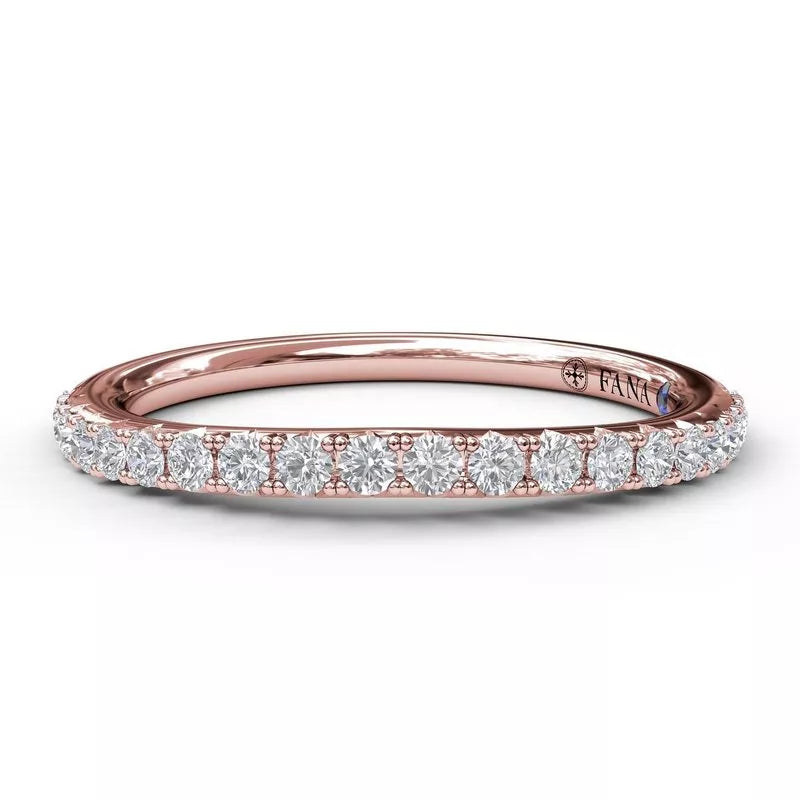 This FANA wedding ring is available in your choice of Platinum, White Yellow or Rose 18 or 14K gold. Price shown is for 14K Gold.