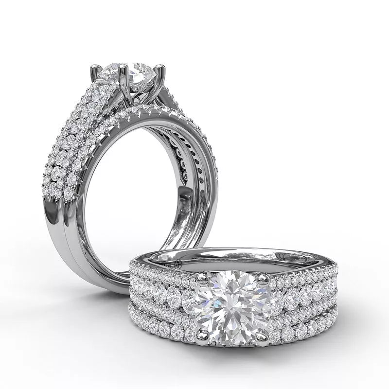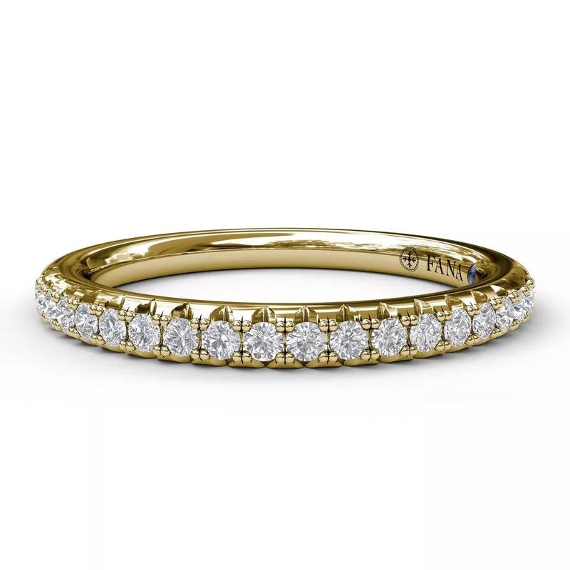 This FANA wedding ring is available in your choice of Platinum, White Yellow or Rose 18 or 14K gold. Price shown is for 14K Gold.