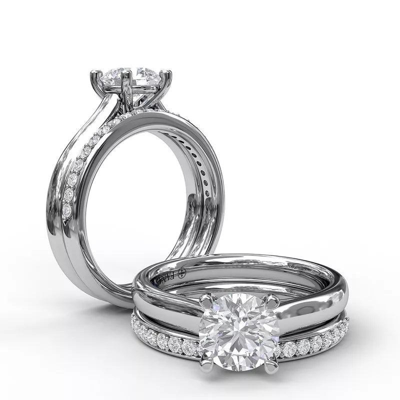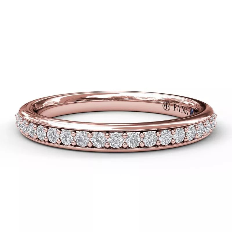 This FANA wedding ring is available in your choice of Platinum, White Yellow or Rose 18 or 14K gold. Price shown is for 14K Gold.