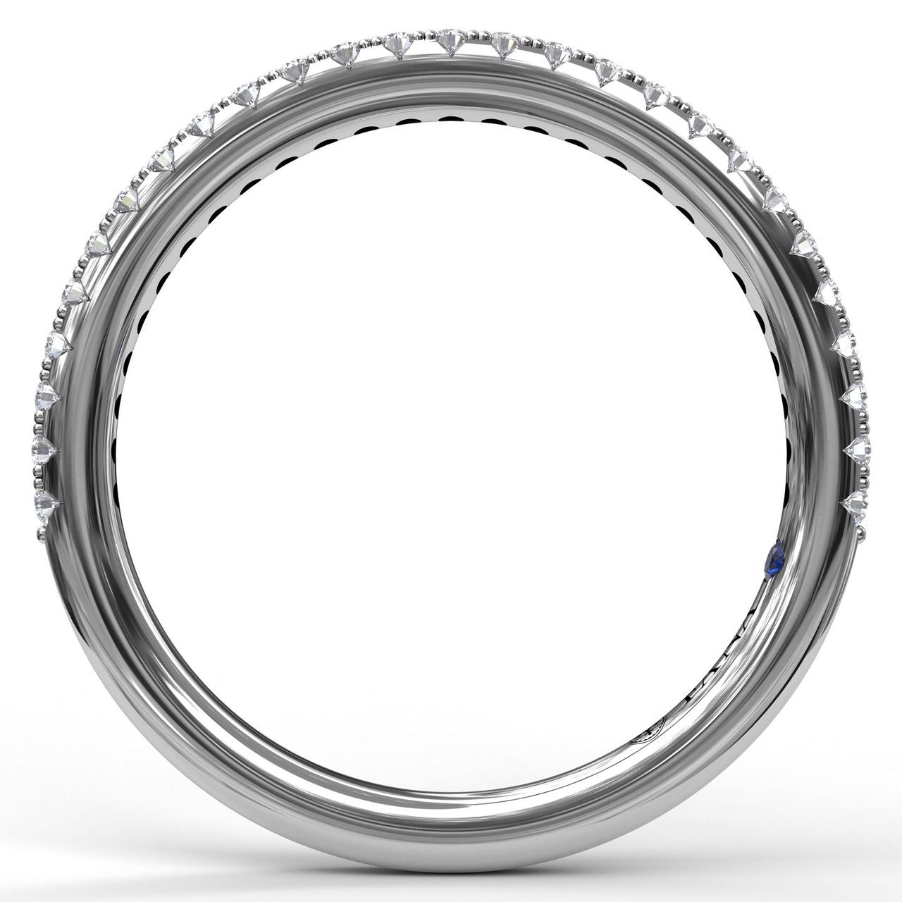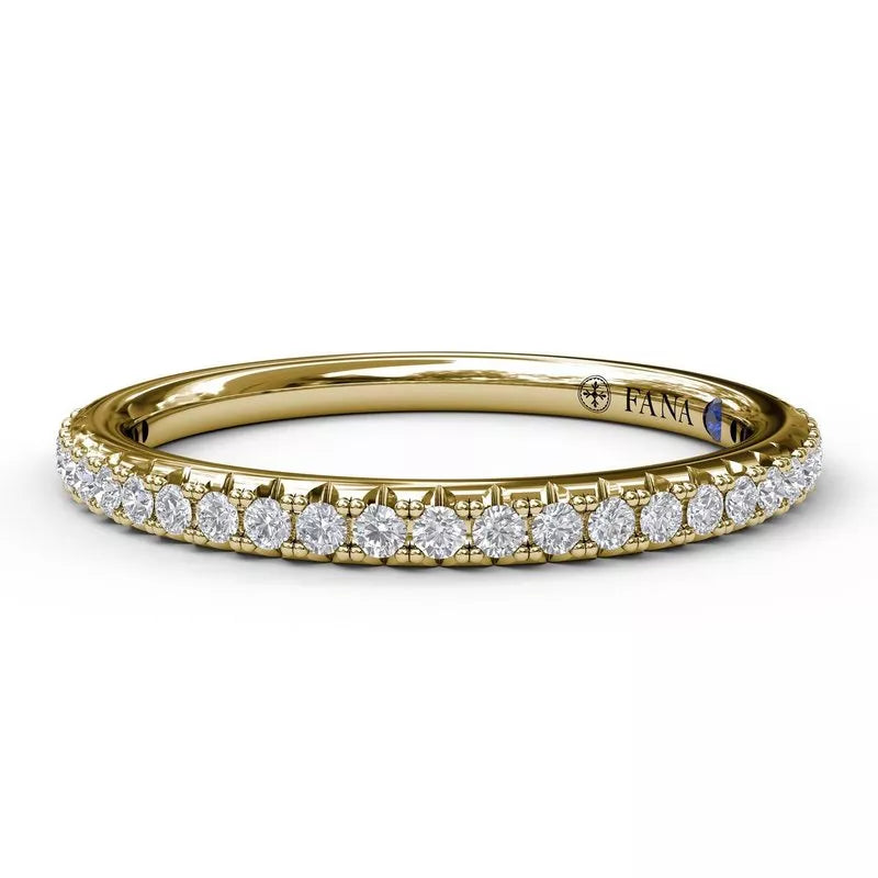 This FANA wedding ring is available in your choice of Platinum, White Yellow or Rose 18 or 14K gold. Price shown is for 14K Gold.