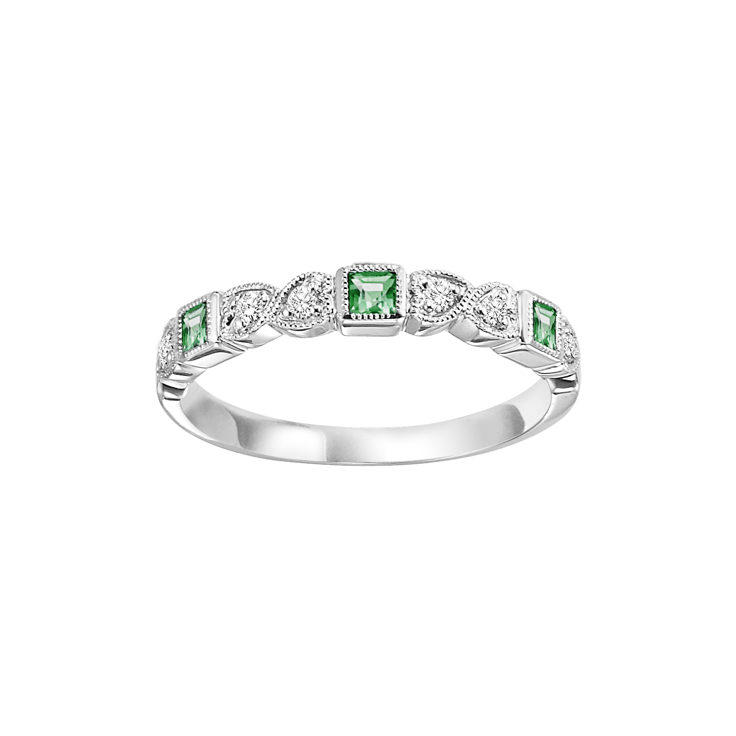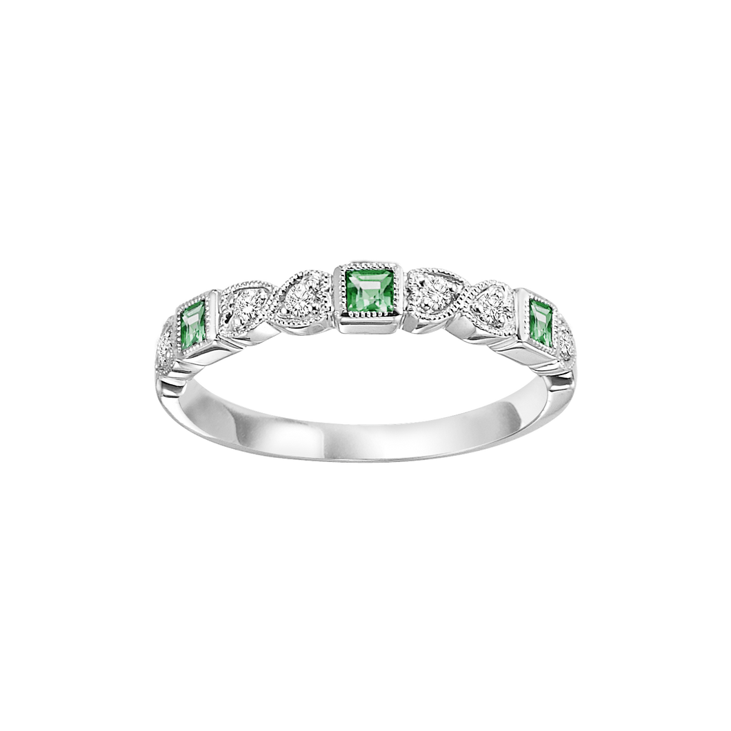 Make a fashion statement with this stackable eye-catching 10K White, Yellow or Rose Gold 0.10CTW Diamond & 0.10CTW Emerald ring. Wearing just one ring, or several, mix the metals or the gemstone colors, the combinations are endless!