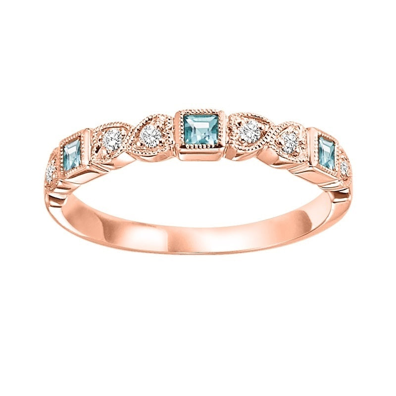 Our beautiful 10K rose gold Mix Bezel Aquamarine Band 1/10CT is the perfect jewelry choice for you or your loved one.