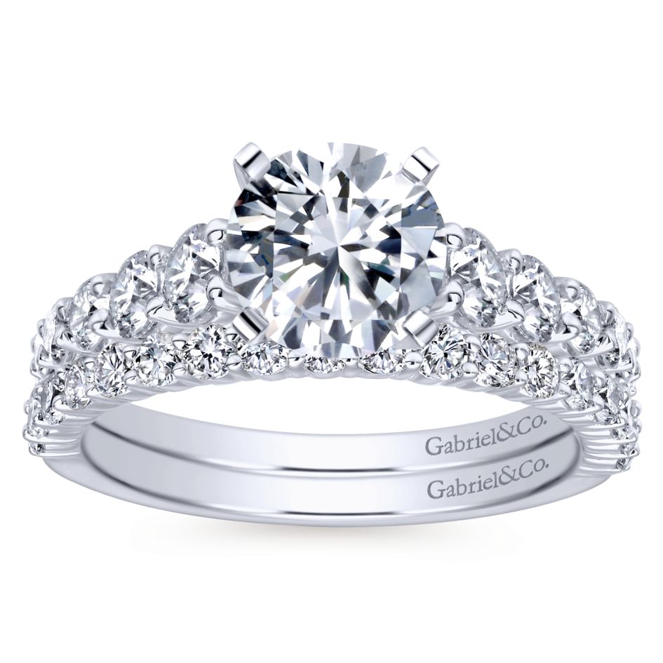 Gabriel Bridal Collection White Gold Diamond Graduating Diamond Accent with Straight Cathedral Setting Engagement Ring (1 ctw)
