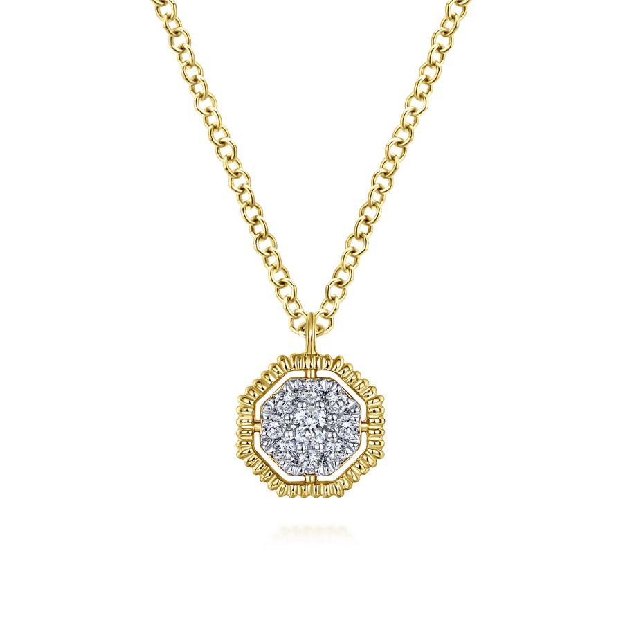 14K Yellow Gold Octagonal Pave Diamond Pendant Necklace