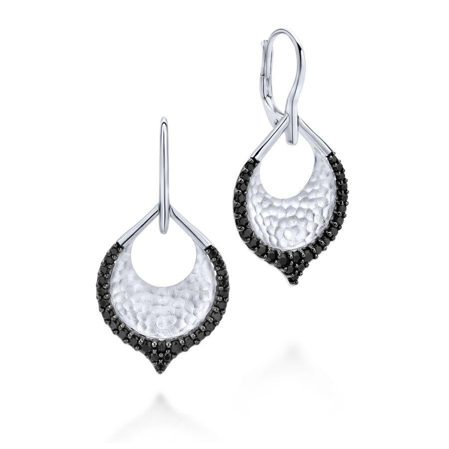 Hammered Sterling Silver and Black Spinel Drop Earrings