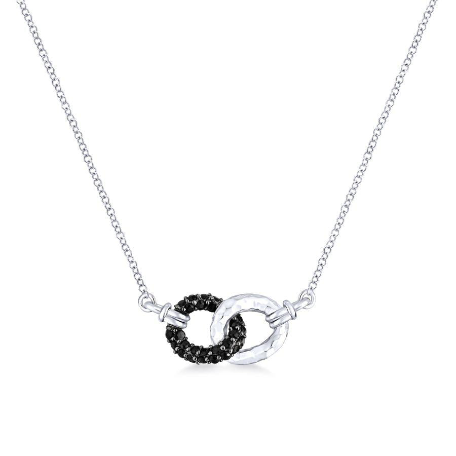 Sterling Silver and Black Spinel Interlocking Loops Fashion Necklace