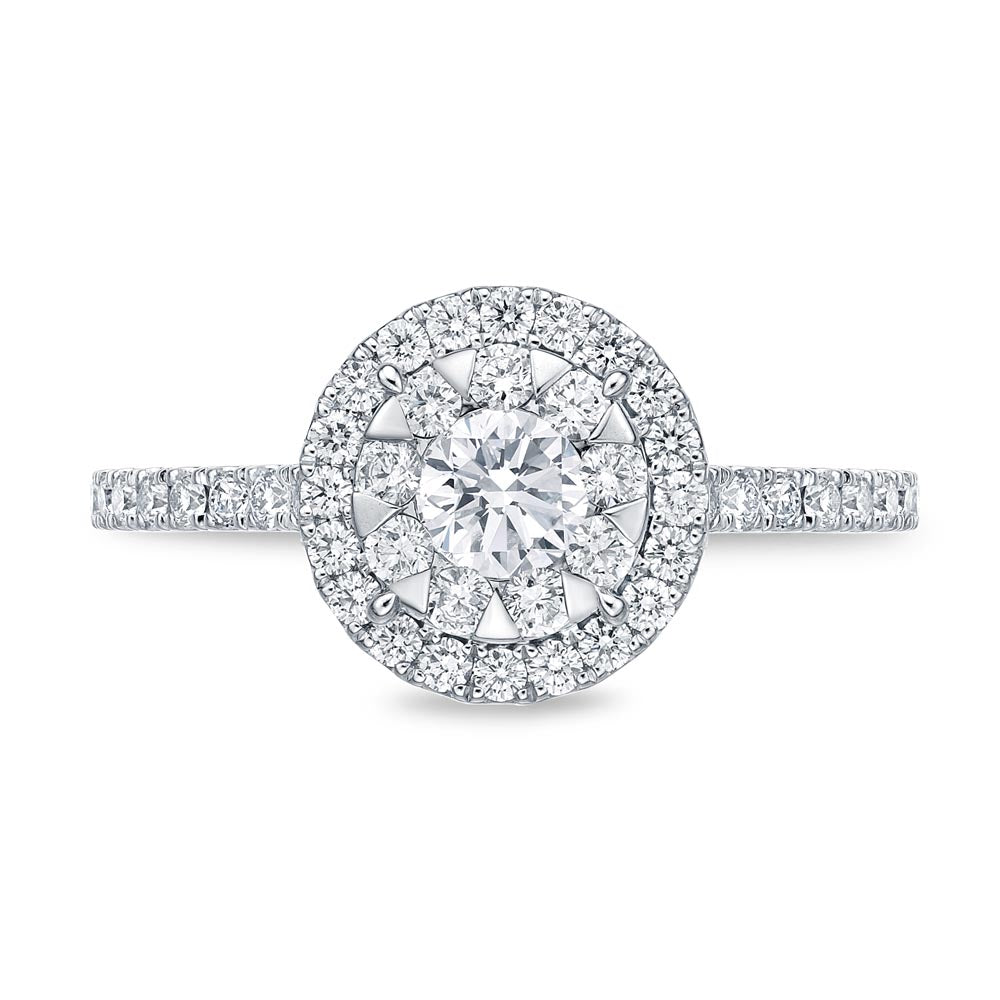 Diamond Bouquets Halo Diamond Engagement Ring that will stun. The center diamond looks twice as big with its own halo of diamonds and white gold.