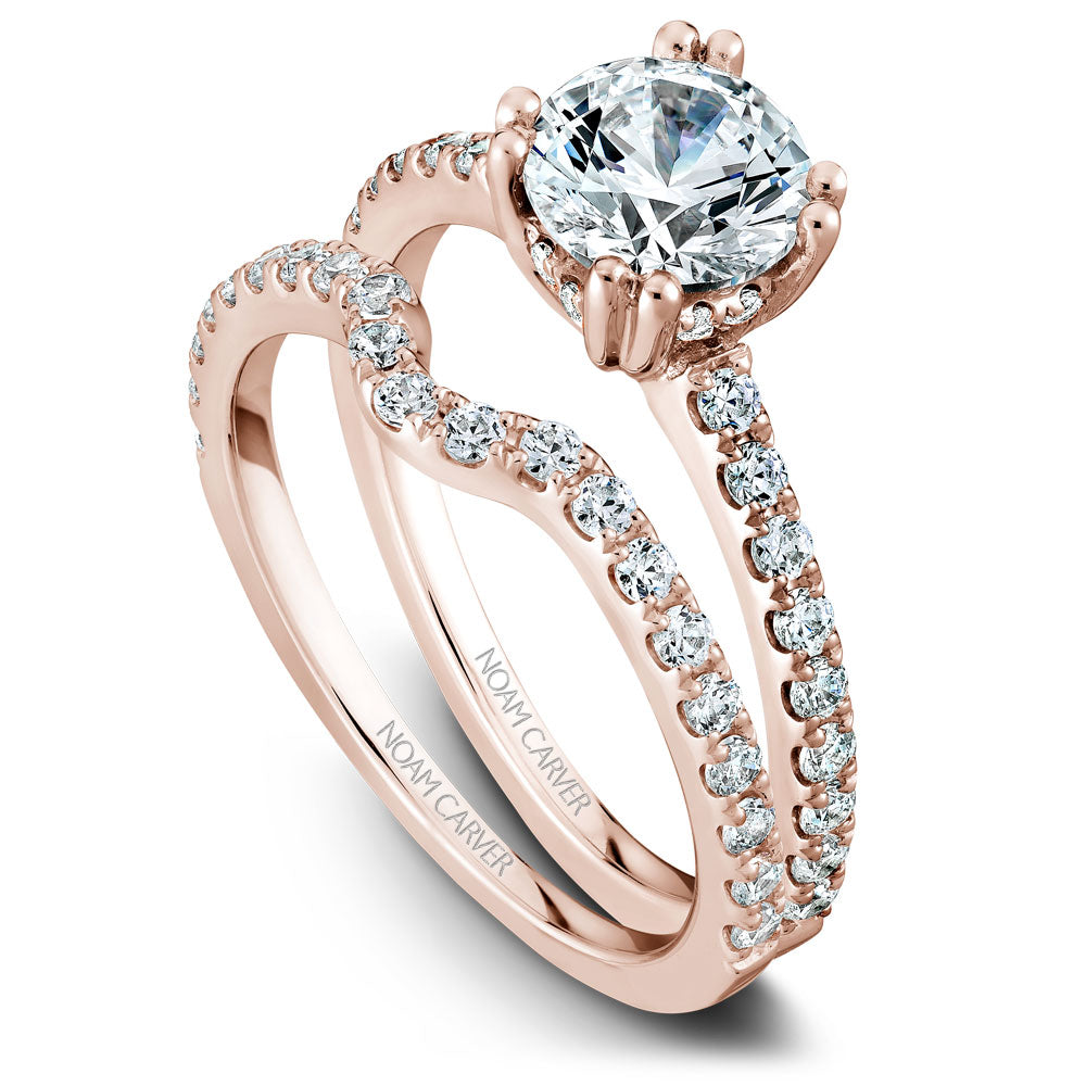 A Noam Carver rose gold engagement ring with 26 diamonds.