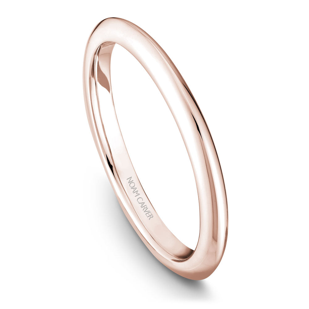 A Noam Carver rose gold engagement ring with a round centerpiece.