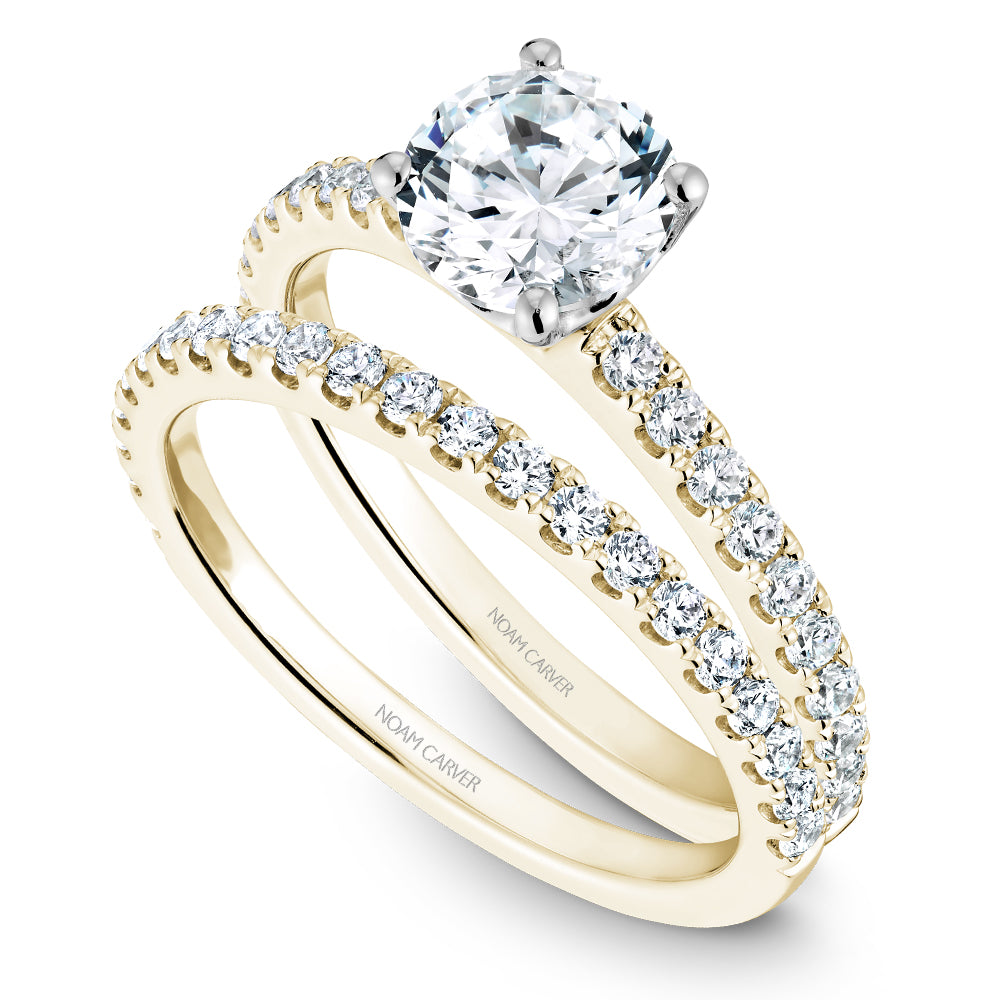 A Noam Carver yellow gold engagement ring with 20 diamonds.
