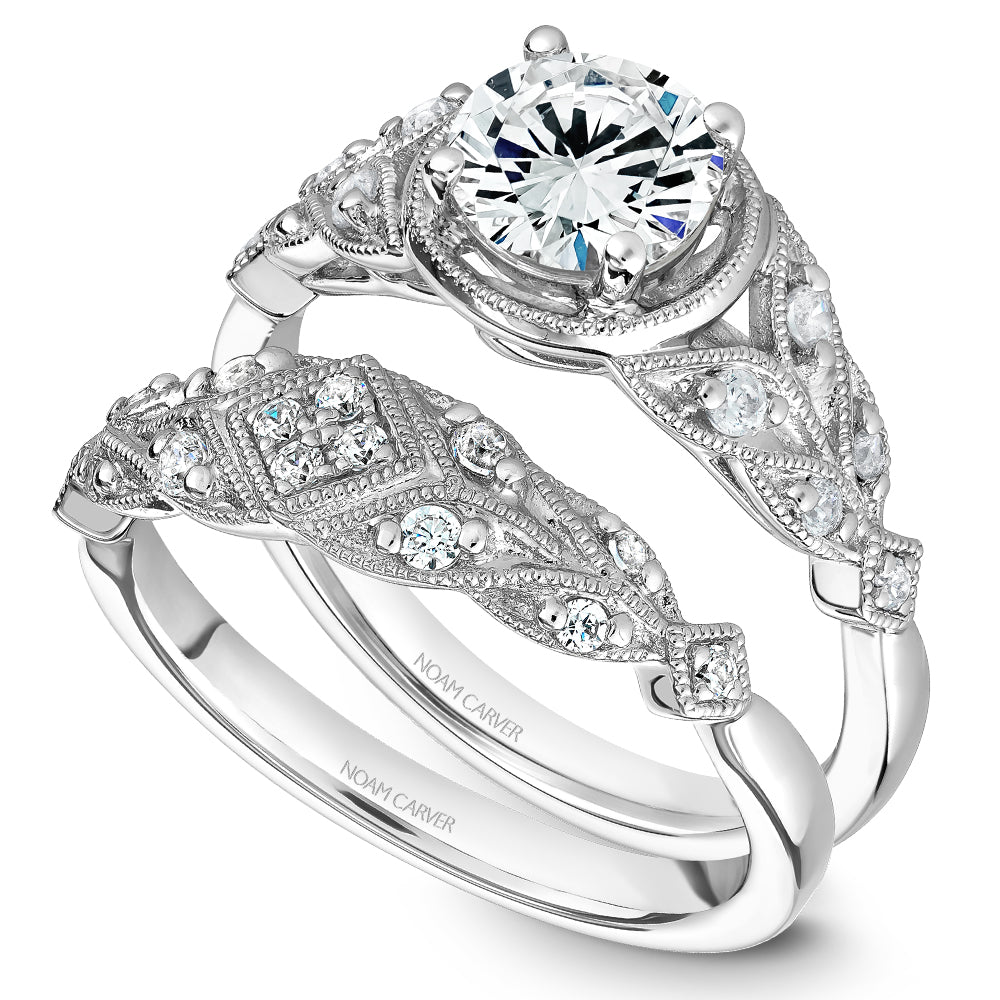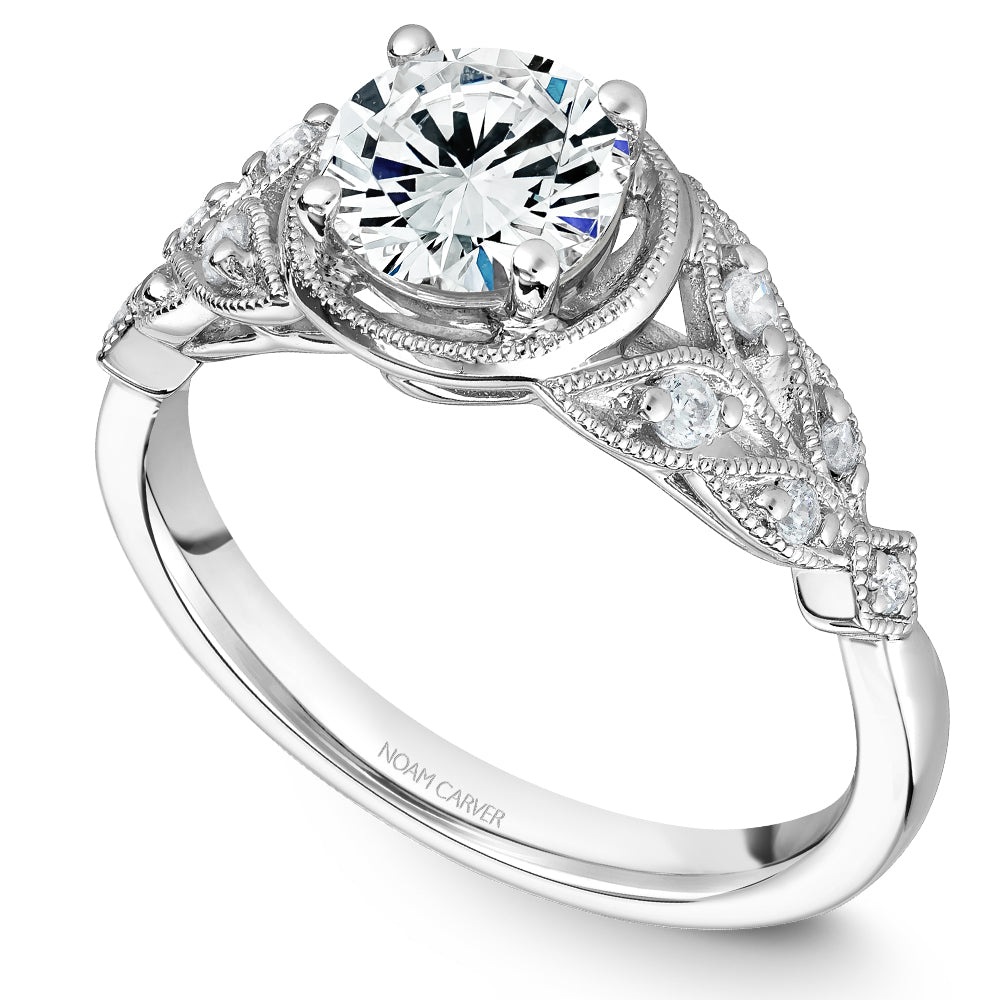 Noam Carver White Gold Milgrain Bezel Vintage Diamond Engagement Ring Setting (0.15 CTW)