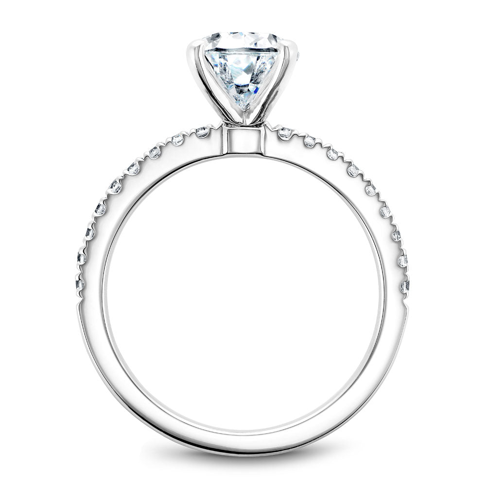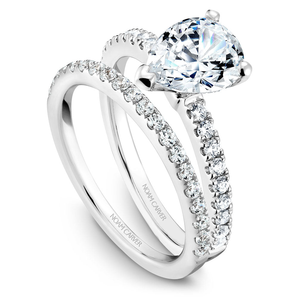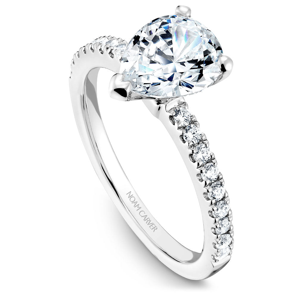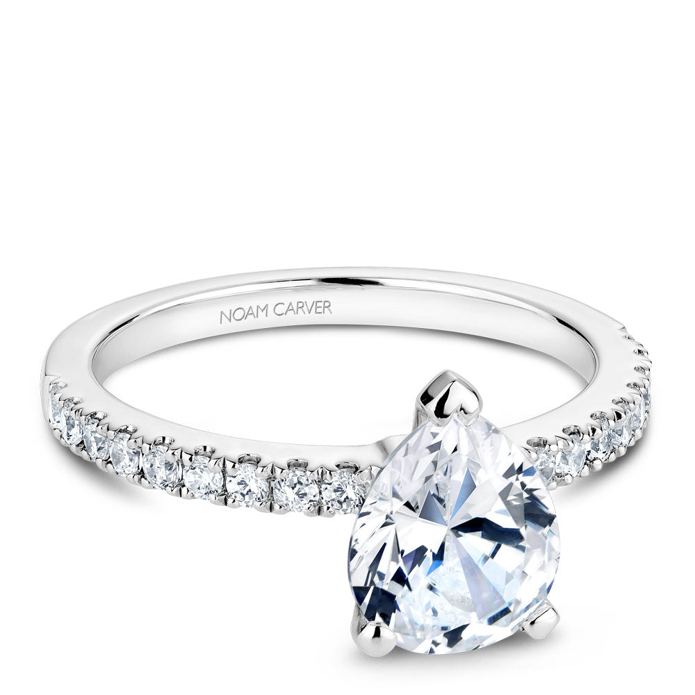A Noam Carver white gold engagement ring with a pear cut centerpiece and 18 diamonds with Pear Center Stone (0.28 CTW).