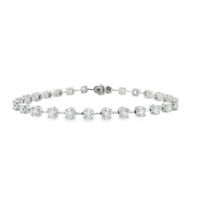Experience the luxurious and dazzling sparkle of our 5.42 CTW Round Diamond Platinum Tennis Bracelet with bars. Elevate your look and make a glamorous statement with this stunning piece of jewelry.