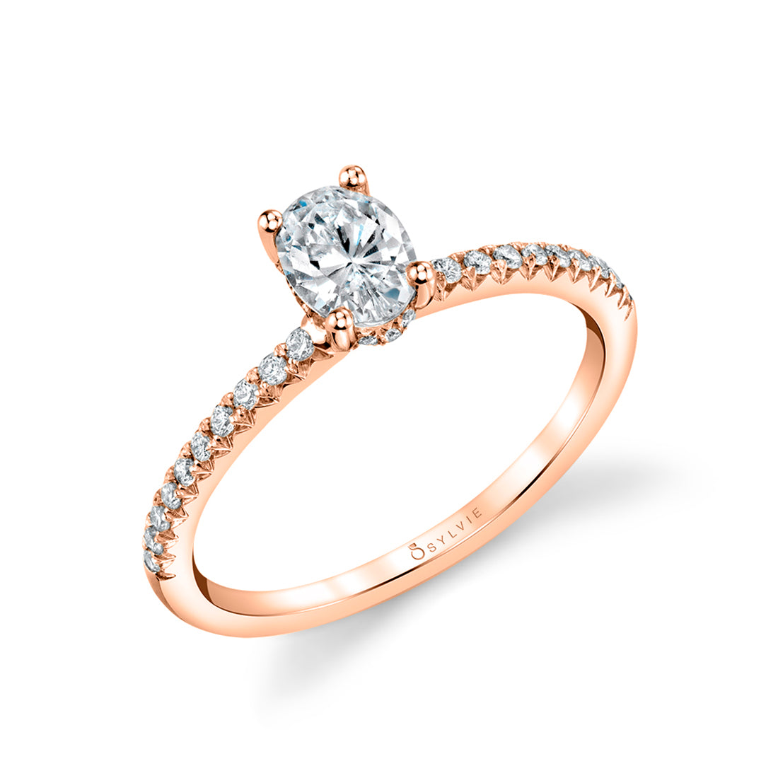 A Sylvie Designed Classic Oval Engagement Ring. A fan favorite with a twist, this timeless yet modern classic engagement ring features a 2 carat pear shaped diamond prong setting with hidden halo set on a shank accented with a total weight of 0.24CTW of cascading pave diamonds.