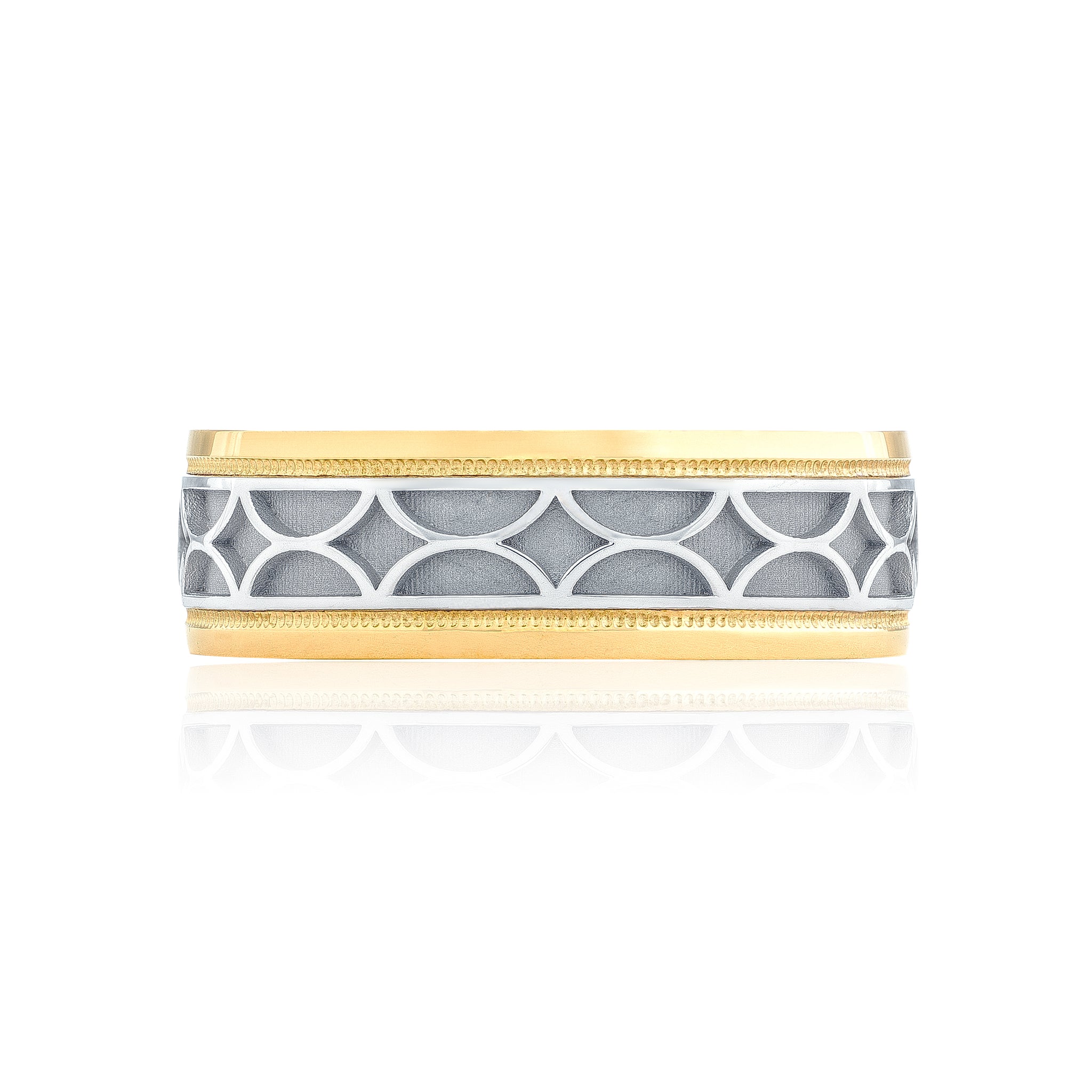 Express yourself! This bold 7mm Gents band with reverse white gold venting and yellow gold rim detailing is for the Tacori Man who isn't afraid to show off his colors.