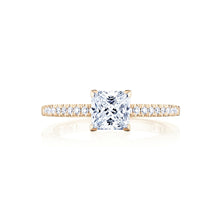 Less metal, means more scene-stealing diamond action. A princess-cut diamond solitaire rests gently on an eternity diamond band with french pav̩, revealing more diamond than metal. This ring features a brand new crescent inner face with pinpoint diamond details for a truly regal look.