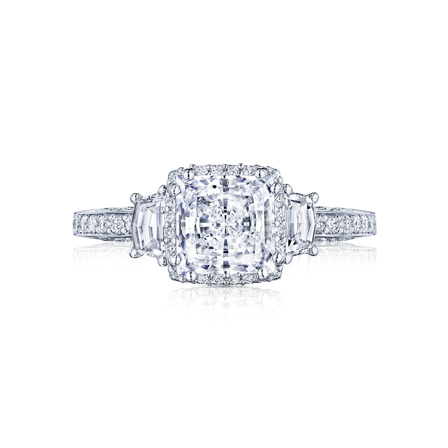Tacori 18k White Gold Dantela Princess Diamond Engagement Ring Setting (0.69 CTW)