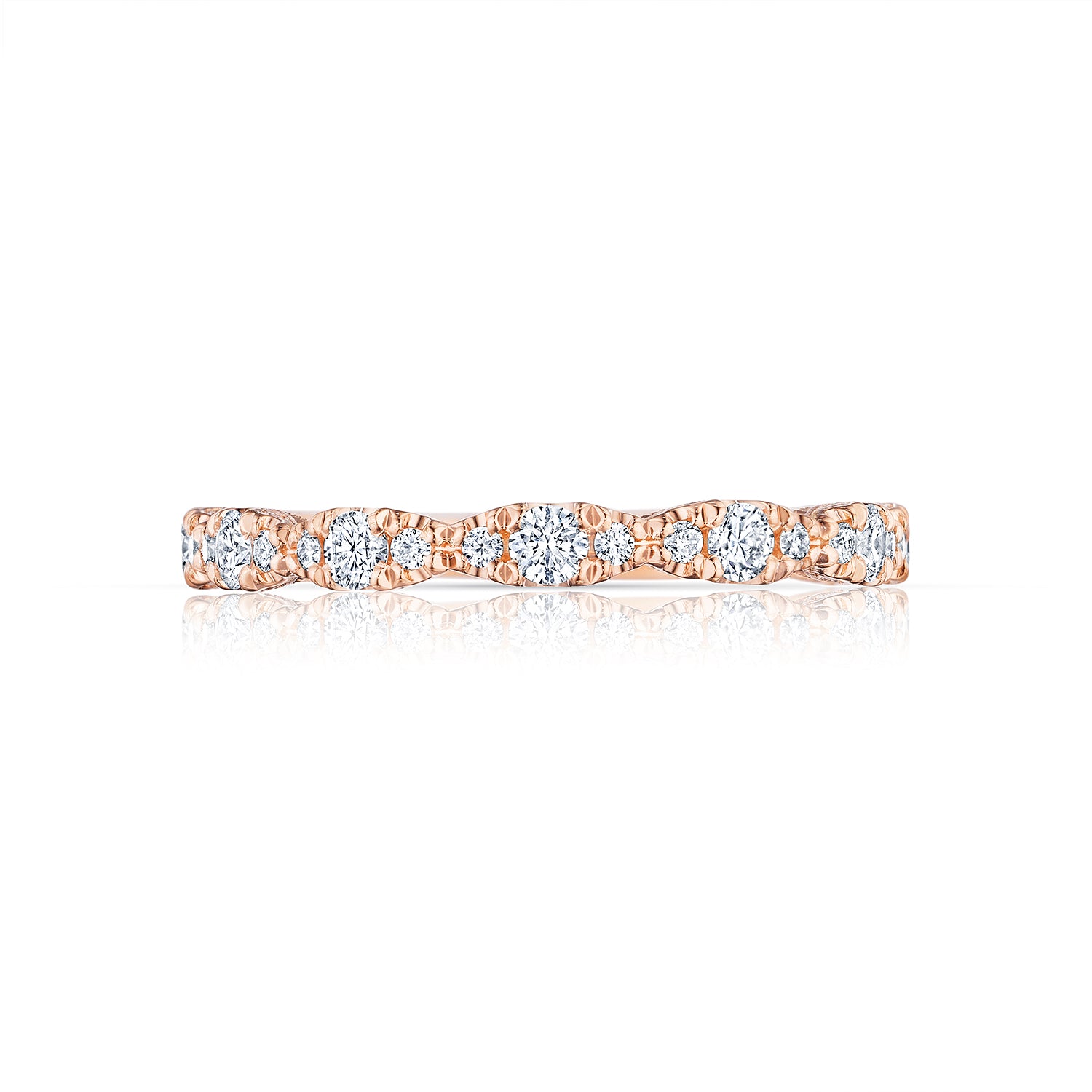 Beautiful marquise shapes with brilliant graduating diamonds dance 3/4 way along this stunning rose gold ladies band.