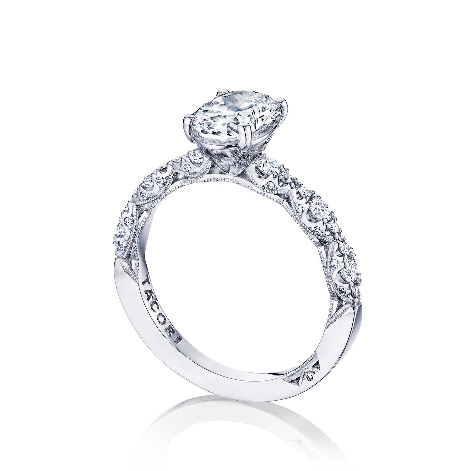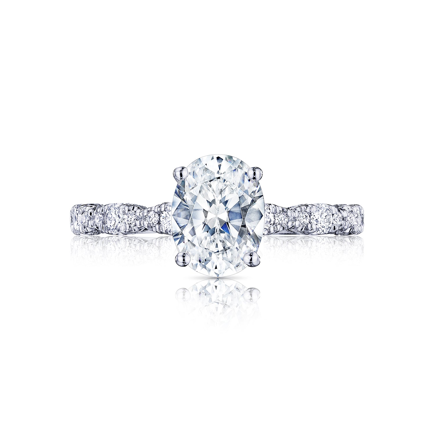 Tacori 18k White Gold Petite Crescent Oval Diamond Engagement Ring Setting (0.35 CTW)