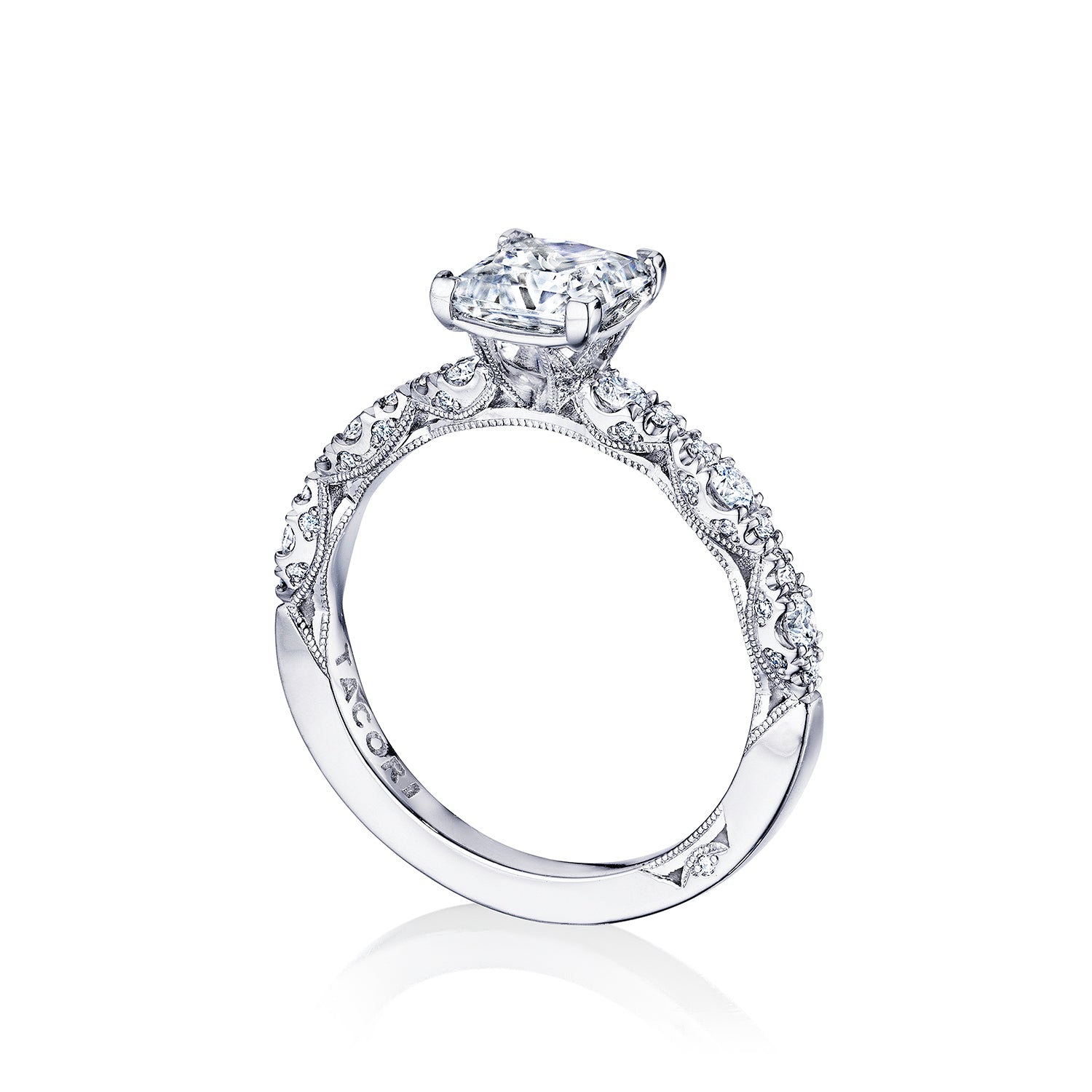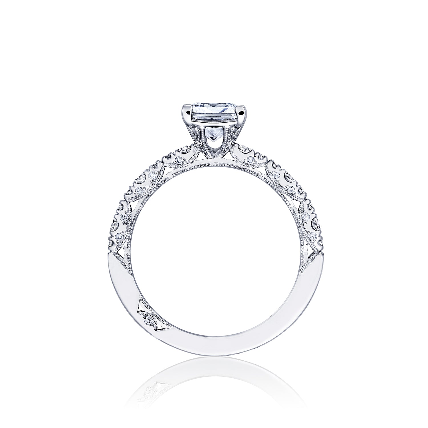 Tacori 18k White Gold Petite Crescent Princess Diamond Engagement Ring Setting (0.35 CTW)