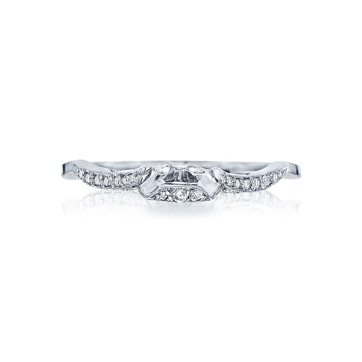 This contoured wedding bands has an amazing crescent silhouette to pair perfectly with a Tacori engagement ring.