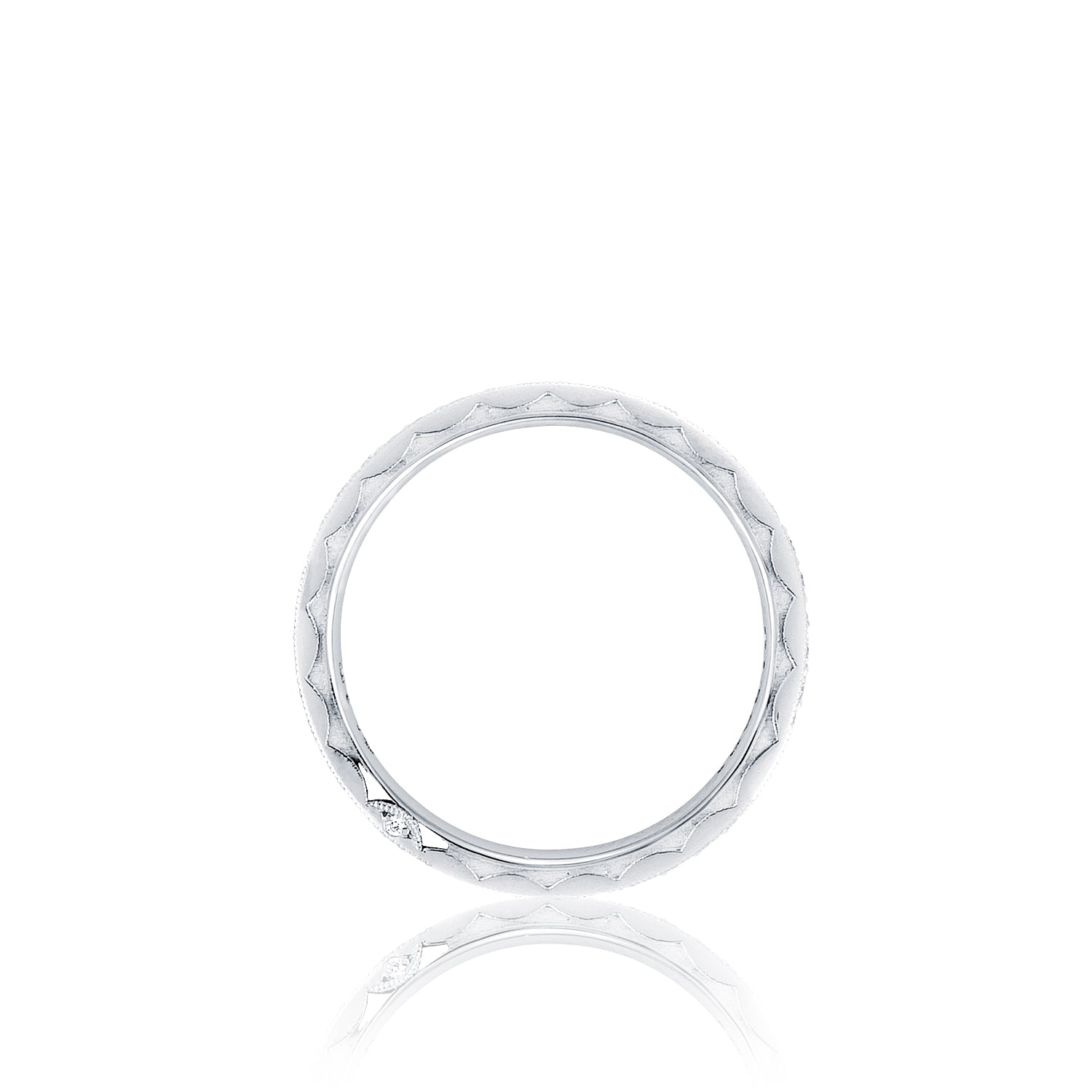 A truly unique Tacori wedding band with bright white diamonds pavé set in