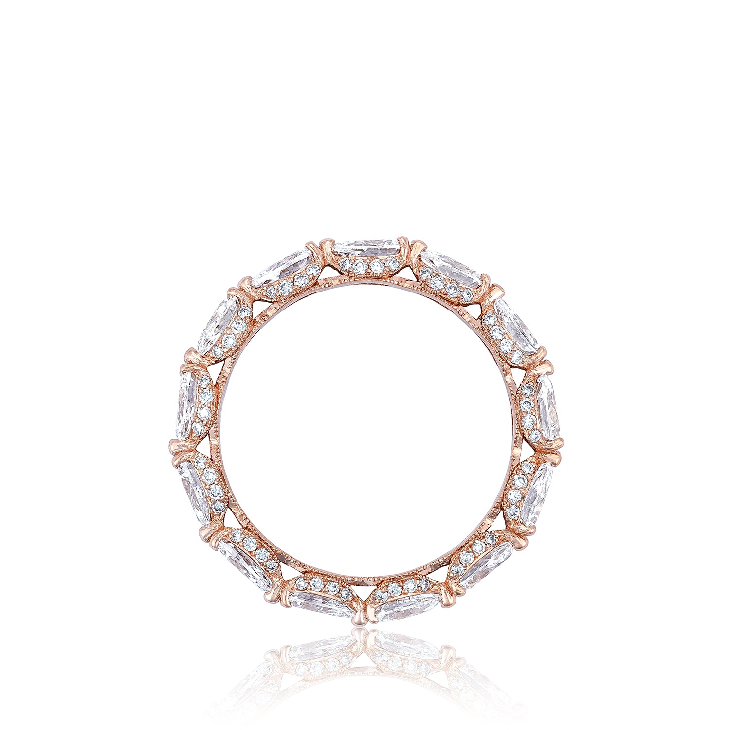 A truly unique Tacori wedding band with bright white diamonds pavé set in rose gold providing an all diamond look. Worn alongside your Tacori engagement ring or stacked on your right hand this ring is not to be missed.