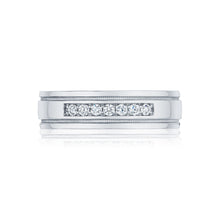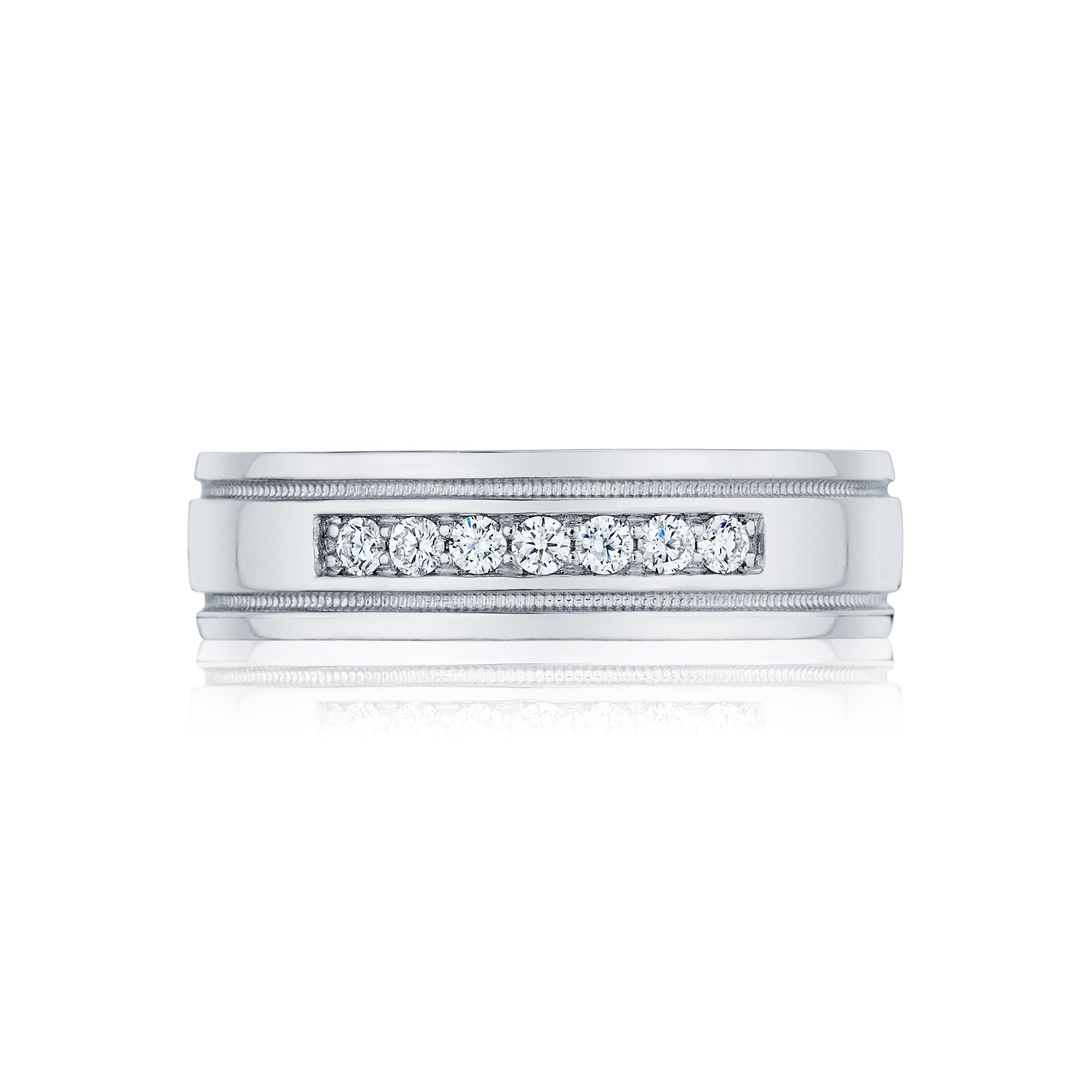This refined Men's band is perfect for the man with style, with milgrain details along the band and seven round brilliant diamonds in a channel setting