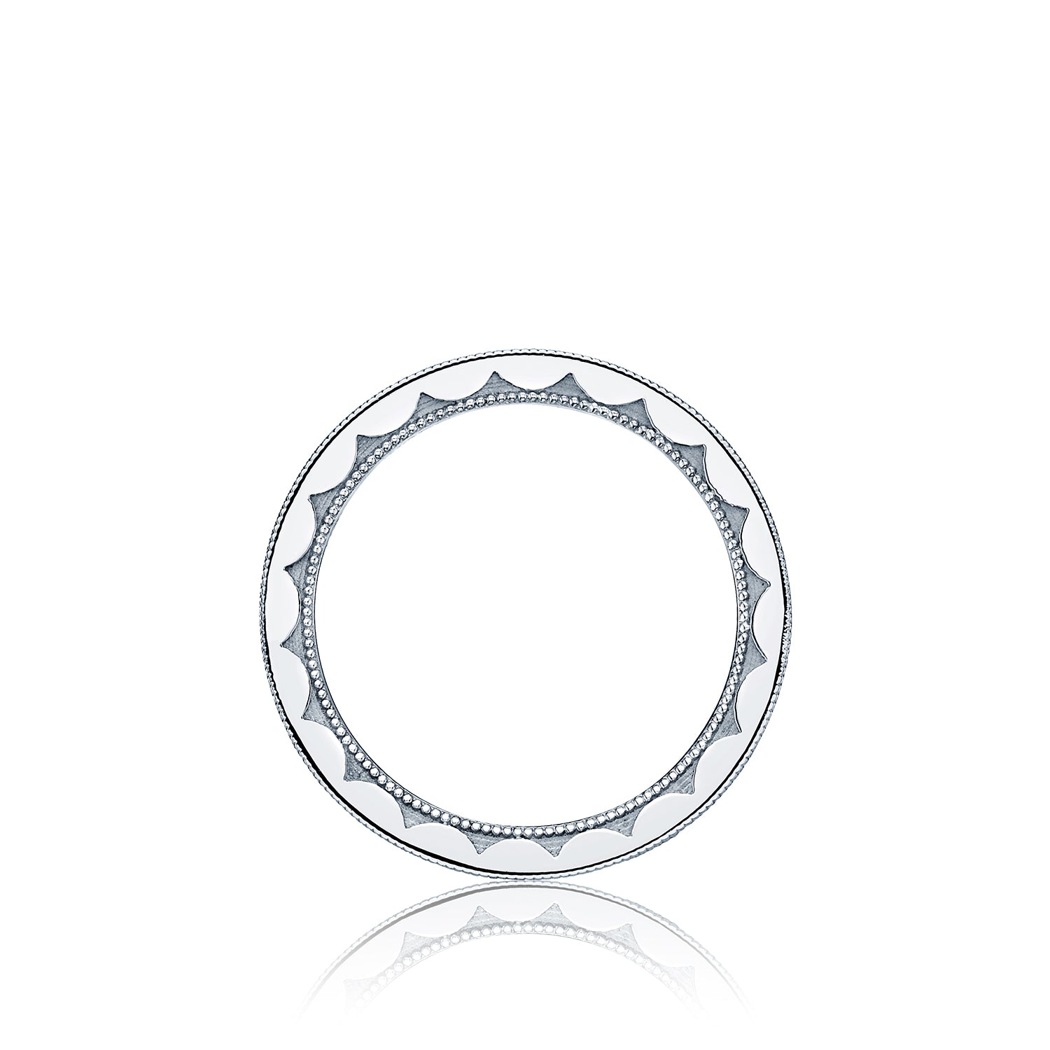 Diamond crescents illuminate a string of channel set princess cut diamonds for a modernly streamlined look that will complement many Tacori engagement rings.