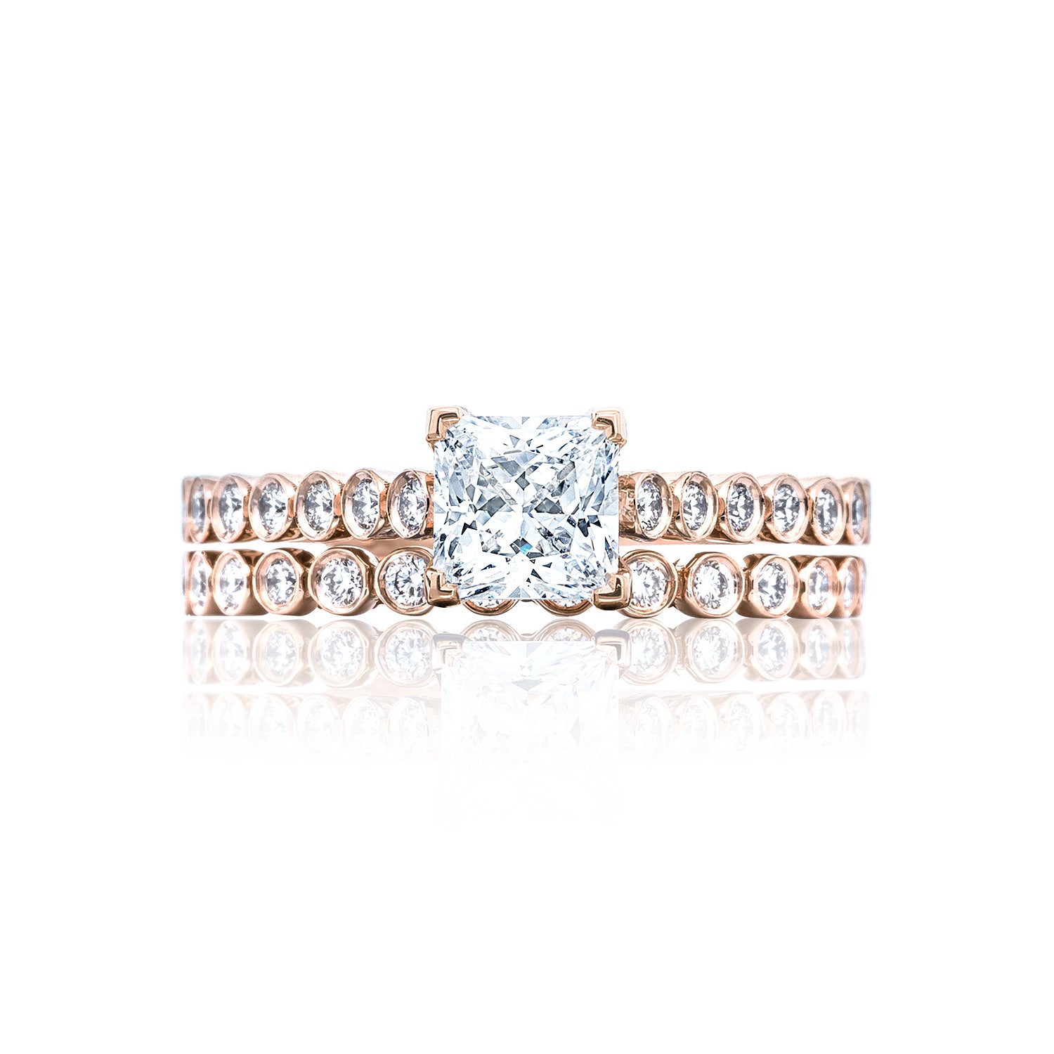 Tacori 18k Rose Gold Sculpted Crescent Princess Diamond Engagement Ring Setting (0.2 CTW)
