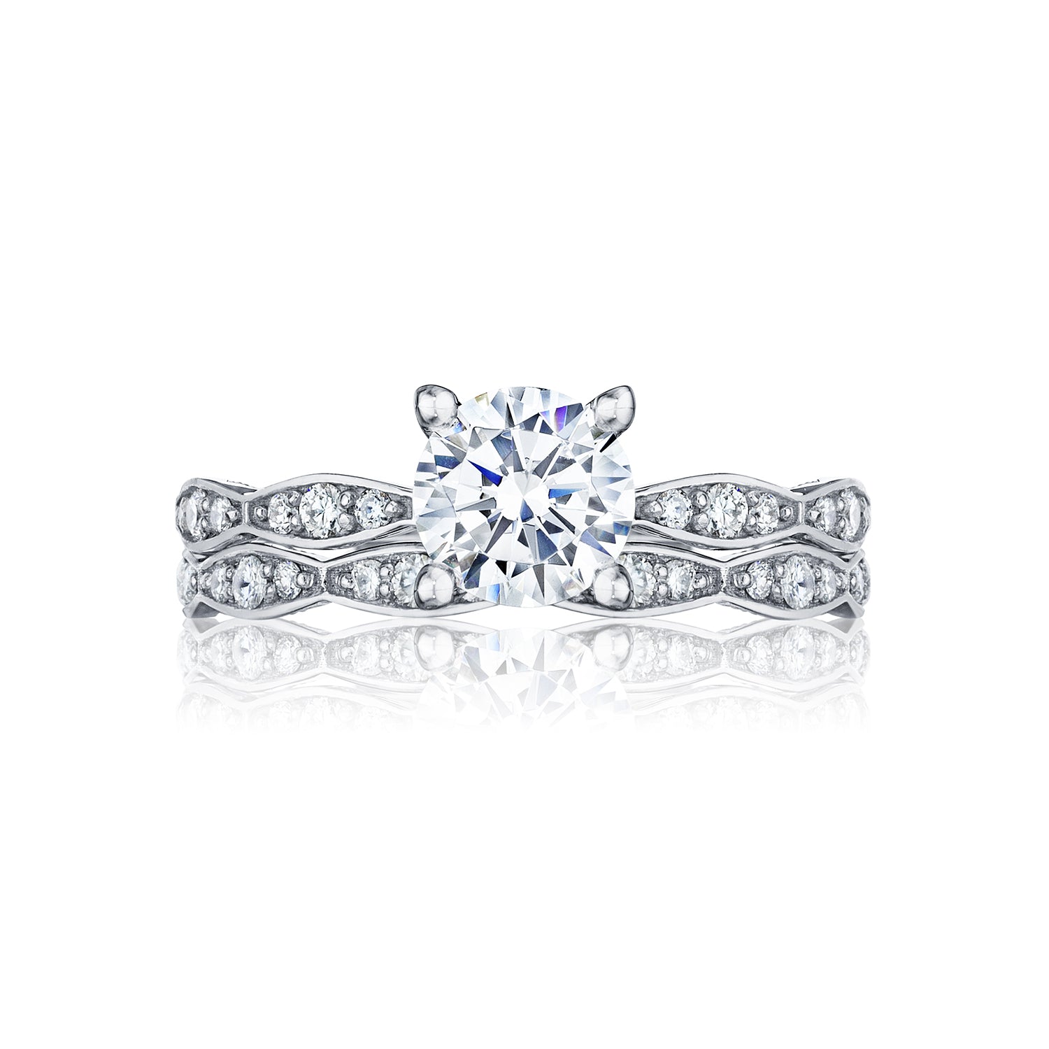 Tacori Platinum Sculpted Crescent Round Diamond Engagement Ring Setting (0.15 CTW)
