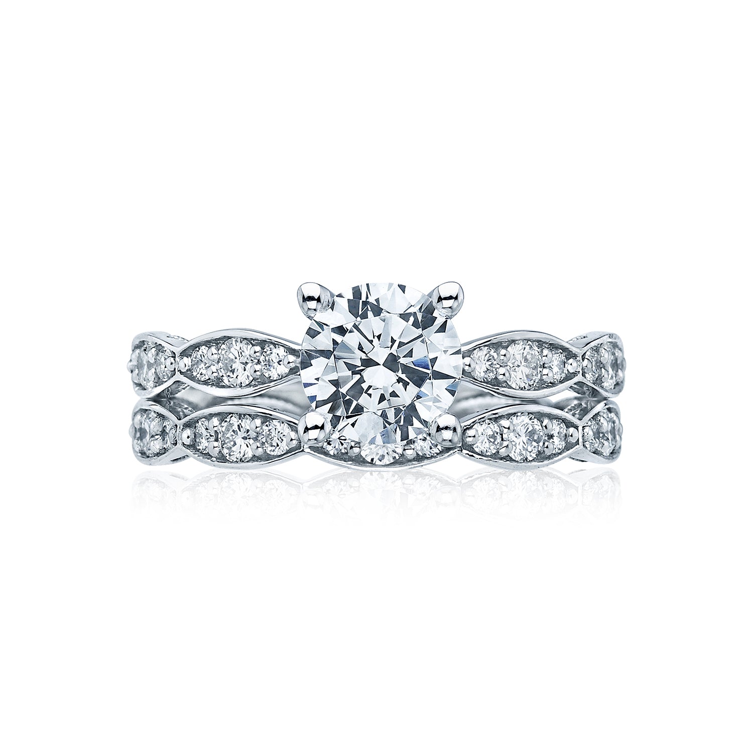 Tacori 18k White Gold Sculpted Crescent Round Diamond Engagement Ring Setting (0.28 CTW)