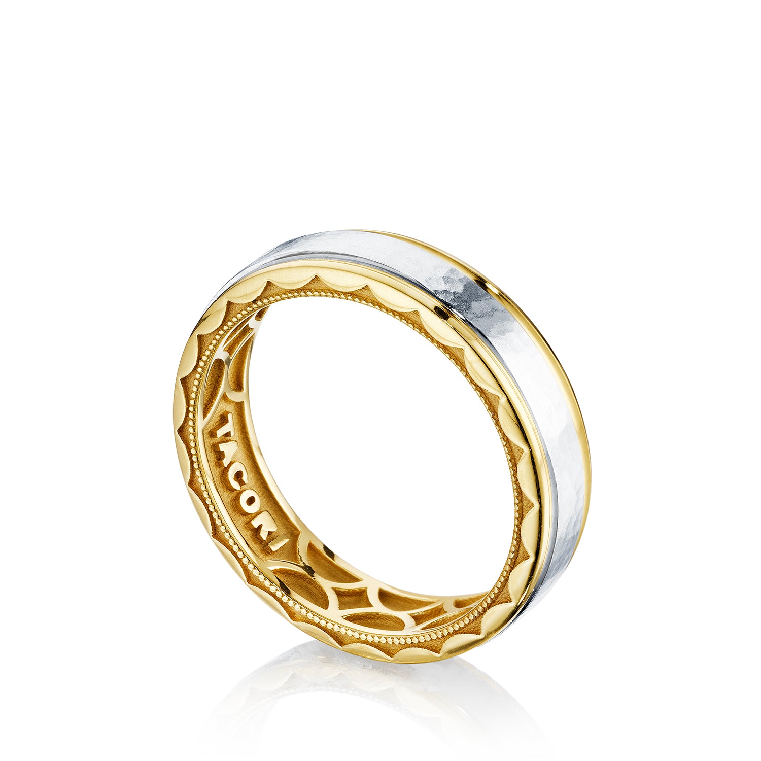 For the Tacori Man in your life who loves to show off his unique style! This duo-tone band with a hammered rose gold finish in a platinum embrace will allow your man's style to shine from every angle.