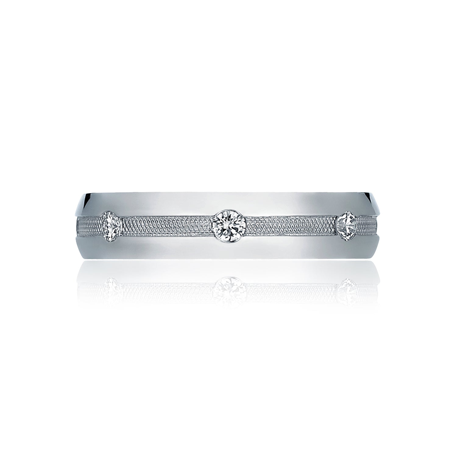 A 6mm rounded Gentlemen's band is perfect for the simple Tacori man. Diamonds line this classic ring to bring out the high polished finish. It wouldn't be Tacori without the iconic crescent design lining the profile of this stunning wedding band.
