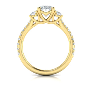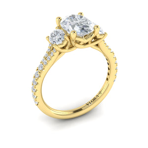 Experience pure elegance with the Vlora 3 Stone Engagement Ring, crafted in stunning 14K yellow gold and featuring a .74 CTW of brilliant diamonds. Please note, the center stone is not included.