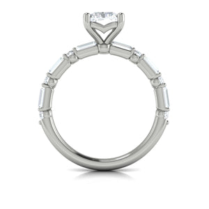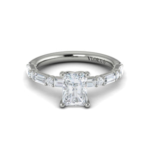 Vlora Classic Emerald Cut Engagement Ring Setting with .76 CTW baguette and round side diamonds in 14K White Gold