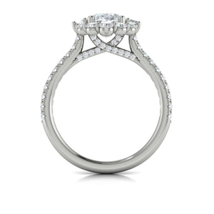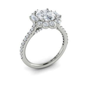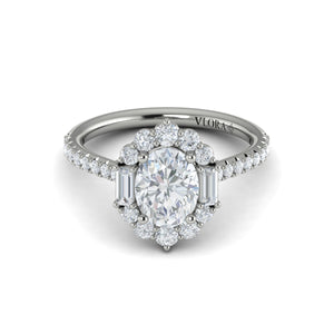 Vlora Oval Halo Engagement Ring Setting with .87 CTW round and baguette diamonds in 14K White Gold