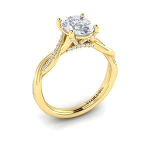 Vlora Twisted Engagement Ring Setting with .21 CTW of side diamonds in 14K Yellow Gold